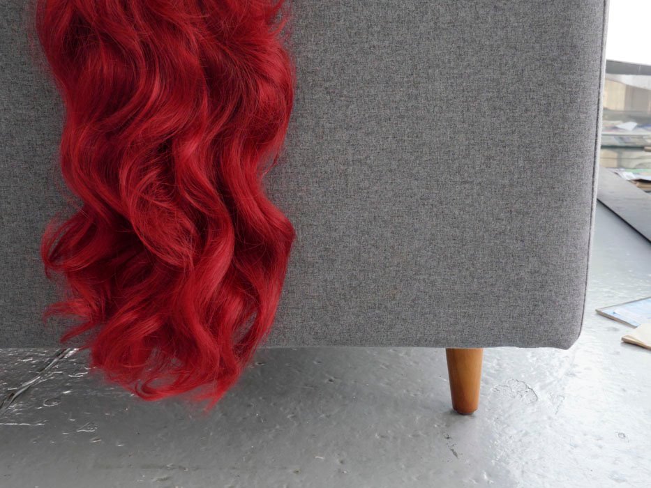 as it always was, flaming red and spilling over her shoulders.